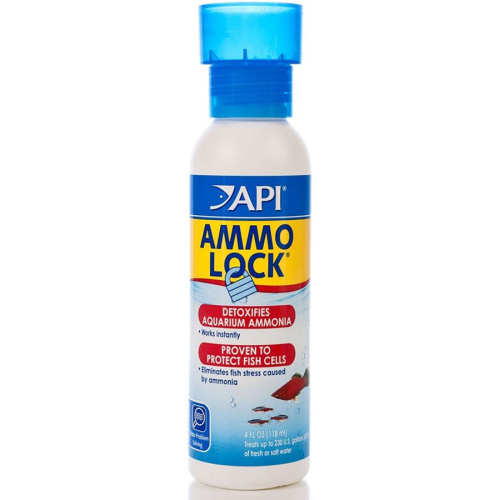 API Ammo Lock works instantly to detoxify ammonia produced by fish waste, and remove chlorine and chloramine from tap water, while eliminating ammonia stress and protecting healthy gill function.
