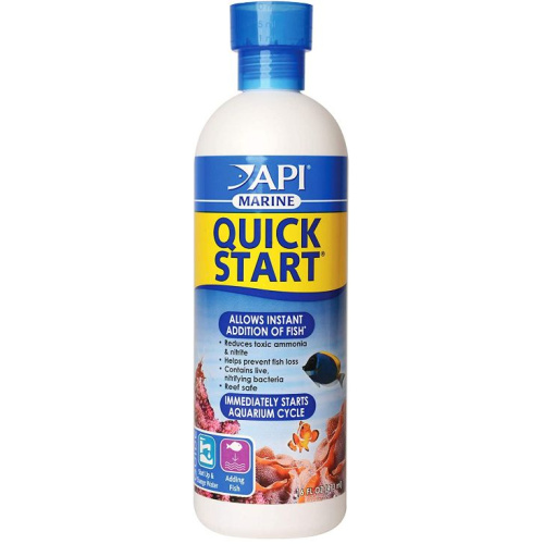 API Marine Quick Start Water Conditioner nitrifying bacteria enables you to start your aquarium immediately, allowing for the instant addition of fish as it kick-starts the natural aquarium cycle. API Marine quick start nitrifying bacteria reduces toxic ammonia and nitrite, helping to prevent fish loss, and is safe for reef aquariums. Product may be used after water or filter changes, when adding new elements to your aquarium, or after medicating your fish.