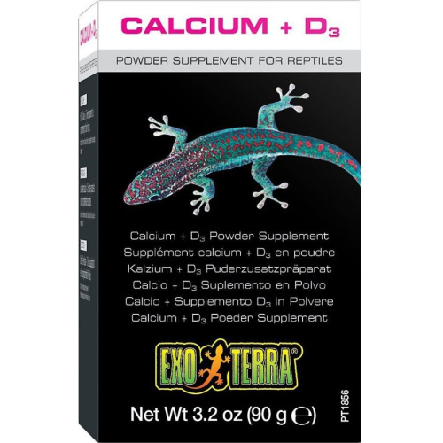 Exo-Terra Calcium + D3 Powder Supplement for Reptiles - 3.2 oz (90 g)Exo-Terra Calcium + D3 Powder Supplement provides high levels of the calcium pet reptiles and amphibians need to develop healthy bones and metabolism, plus Vitamin D3 to meet the needs of reptiles not exposed to natural sunlight.