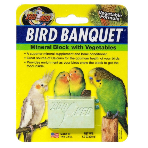 Zoo Med Bird Banquet Vegetable Block helps you add essential calcium and other nutrients to your birds diet. This vegetable block contains a blend of nutritious fruits such as Pineapple, Papaya, Mango and Banana. This formula is designed to improve digestion in your birds and improve their overall health.